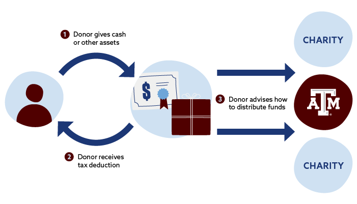 If you already have a donor-advised fund (DAF), you can direct funds from your account to the Texas A&M Foundation to support a cause you are passionate about at Texas A&M.