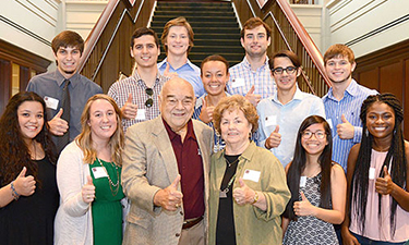 Employee Janet Handley ’76 funds Corps scholarships; couple funds new Foundation Fish Camp award; Jon Hagler ’58 receives honorary degree.