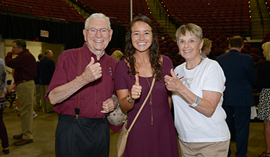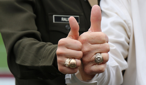 Ashley Ralph ’19 receives her great-grandfather’s class ring, symbolizing a family legacy that spans 100 years of Aggie heritage.